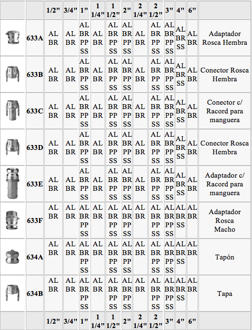 Se proveen con cuerpo de aluminio, bronce, polipropileno y acero inoxidable con juntas de Buna N o Viton.