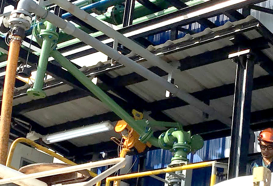 • Las conexiones giratorias poseen un diseño innovador: dentro de la conexión giratoria estructural, construida en acero revestido con TEFLON TEFZEL ETFE DE (0.3mm), existe un girarorio de PTFE solido, en contacto con el liquido. Esto hace que a la estructura mecánica del acero se le agregue la compatibilidad química del PTFE.