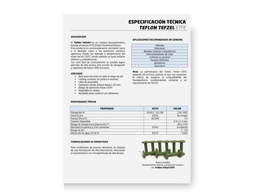• Tipo de Producto: Fluoropolímero ETFE. Material de la familia de productos Teflon.